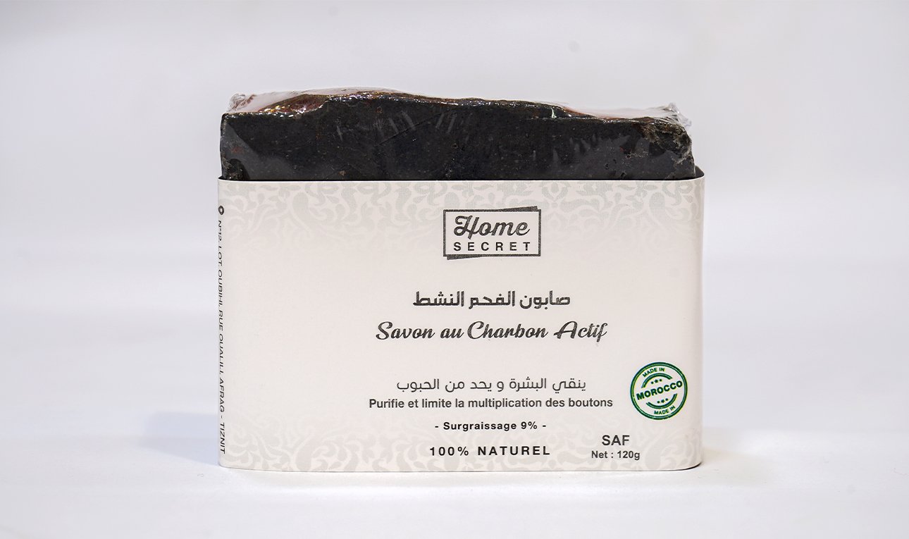 Our solid soap with activated carbon is a real natural solution for skin prone to impurities, excess sebum and daily aggressions. Formulated with nourishing shea butter, regenerating argan oil and softening olive oil, this soap combines the effectiveness of activated carbon – recognized for its detoxifying power – with the richness of precious vegetable oils. Designed artisanally, it respects the skin while providing freshness, softness and balance.